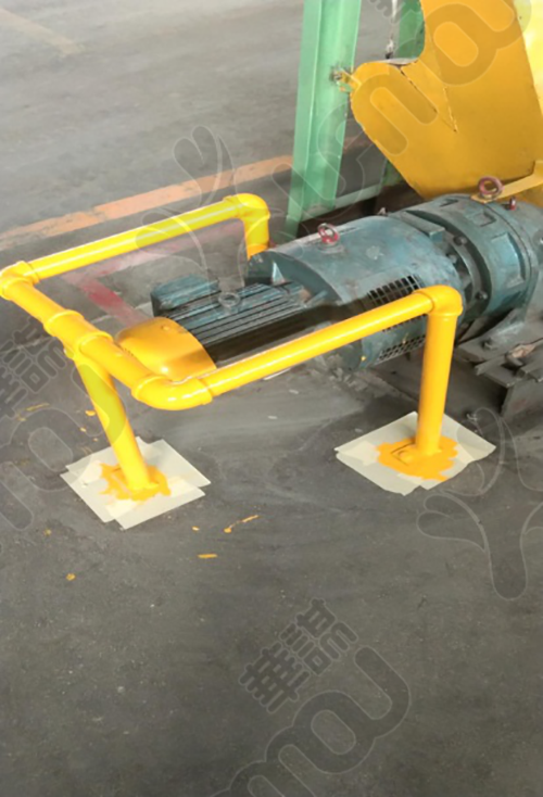增加电机防护支架,用螺栓固定在地面上,方便拆装。消除安全隐患