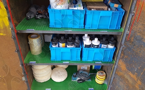 打磨组物料与工具柜放置随意,不易拿取