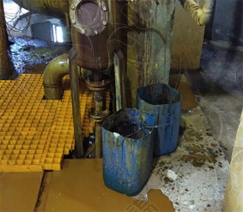 用“漏斗”接一段皮管引入一楼地沟,减少现场废料存储,同时降低员工劳动强度,现场更加美观。