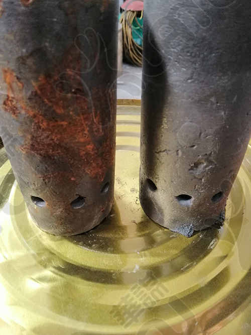 更换双层风帽(φ8mm×12)使排渣口给风分布空间大,加大给风量,流态好,不留死角,不易结焦。